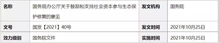 三、國務(wù)院辦公廳關(guān)于鼓勵和支持社會資本參與生態(tài)保護修復(fù)的意見