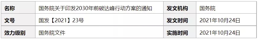 一、國務(wù)院關(guān)于印發(fā)2030年前碳達峰行動方案的通知