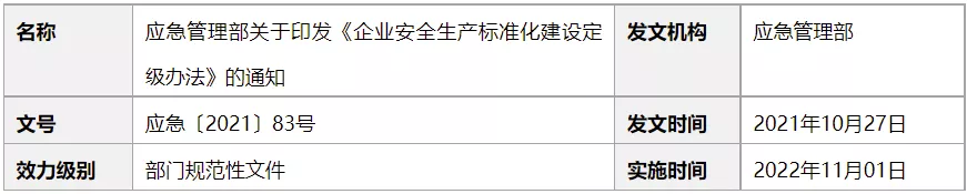 九、應(yīng)急管理部關(guān)于印發(fā)《企業(yè)安全生產(chǎn)標(biāo)準化建設(shè)定級辦法》的通知