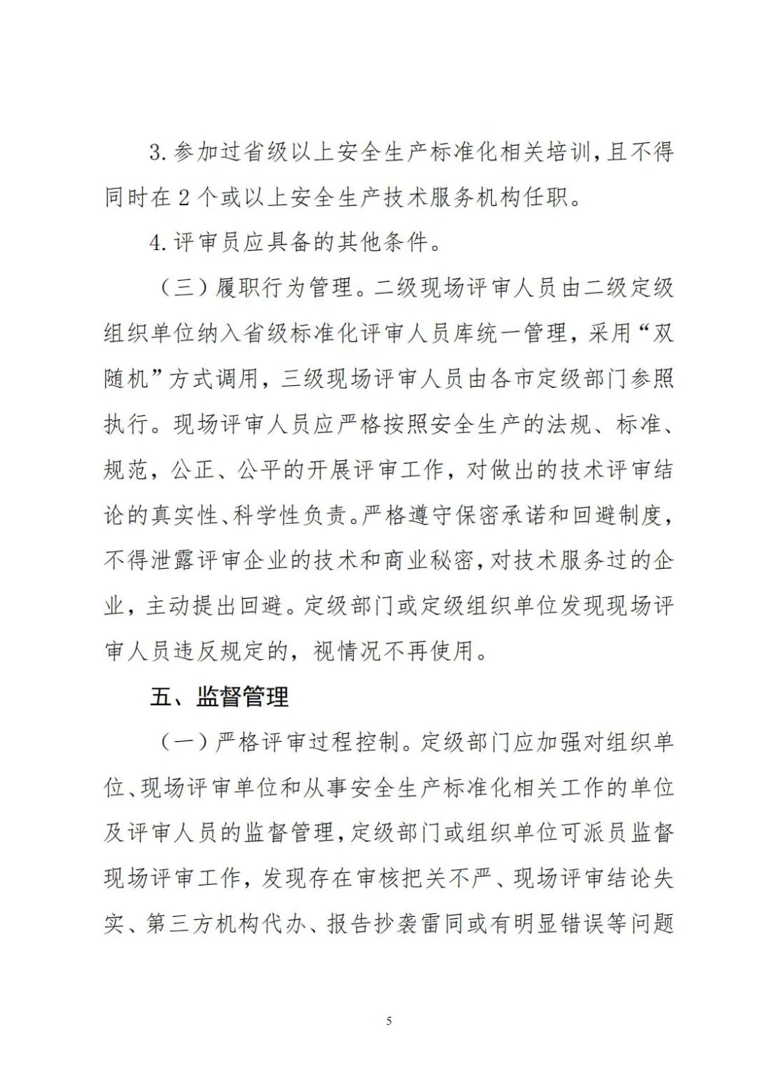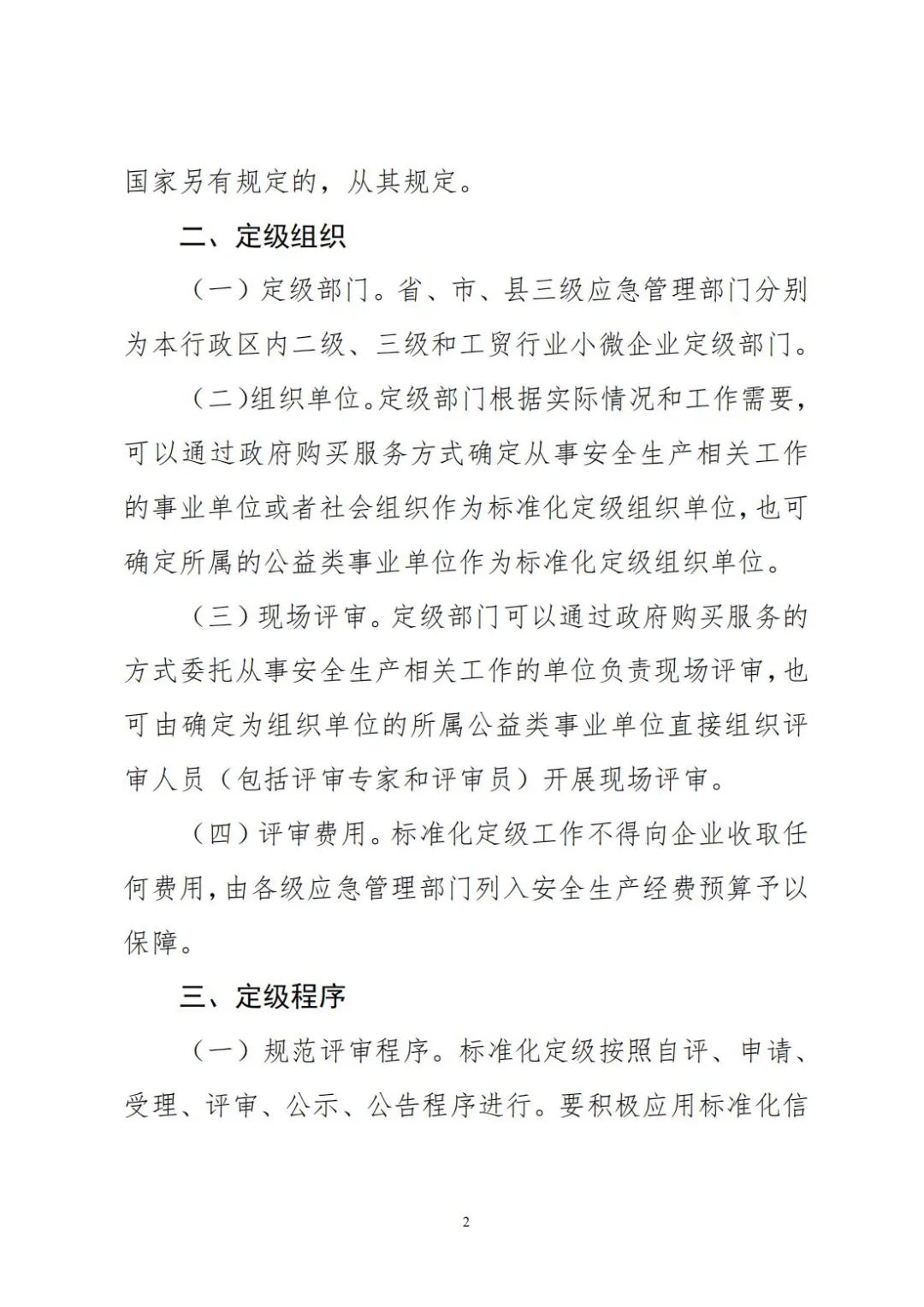 為認真貫徹實施《應急管理部關于印發(fā)〈企業(yè)安全生產(chǎn)標準化建設定級辦法〉的通知》(應急〔2021〕83號 ,以下簡稱《定級辦法》),進一步規(guī)范和促進我省安全生產(chǎn)標準化建設(以下簡稱標準化),現(xiàn)就做好全省標準化定級工作有關事項通知如下:全省非煤礦山、化工(含石油化工)、醫(yī)藥、危險化學品、煙花爆竹、石油開采(不含海洋石油)、冶金、有色、建材、機械、輕工、紡織、煙草、商貿(mào)等行業(yè)企業(yè)要按照《定級辦法》和本通知要求開展標準化定級工作。工貿(mào)行業(yè)具體范圍根據(jù)應急管理部辦公廳《關于修訂<冶金有色建材機械輕工紡織煙草商貿(mào)行業(yè)安全監(jiān)管分類標準(試行)>的通知》(應急廳〔2019〕17號)規(guī)定執(zhí)行。國家另有規(guī)定的,從其規(guī)定。(一)定級部門。省、市、縣三級應急管理部門分別為本行政區(qū)內(nèi)二級、三級和工貿(mào)行業(yè)小微企業(yè)定級部門。(二)組織單位。定級部門根據(jù)實際情況和工作需要,可以通過政府購買服務方式確定從事安全生產(chǎn)相關工作的事業(yè)單位或者社會組織作為標準化定級組織單位,也可確定所屬的公益類事業(yè)單位作為標準化定級組織單位。(三)現(xiàn)場評審。定級部門可以通過政府購買服務的方式委托從事安全生產(chǎn)相關工作的單位負責現(xiàn)場評審,也可由確定為組織單位的所屬公益類事業(yè)單位直接組織評審人員(包括評審專家和評審員)開展現(xiàn)場評審。(四)評審費用。標準化定級工作不得向企業(yè)收取任何費用,由各級應急管理部門列入安全生產(chǎn)經(jīng)費預算予以保障。(一)規(guī)范評審程序。標準化定級按照自評、申請、受理、評審、公示、公告程序進行。要積極應用標準化信息化系統(tǒng),做到網(wǎng)上審報、受理及動態(tài)管理,實現(xiàn)材料“無紙化”和過程“零跑腿”。(二)嚴格創(chuàng)建條件。企業(yè)應當自主開展標準化建設,做到全員參與。企業(yè)創(chuàng)建不得委托第三方機構包辦,創(chuàng)建初期確需技術支持的,可聘請安全生產(chǎn)技術服務機構或專家為企業(yè)提供咨詢和培訓服務。企業(yè)申請除符合《定級辦法》第八條的共性條件外,還應符合:申請二級定級的企業(yè)申請之日前3年內(nèi)未發(fā)生過生產(chǎn)安全死亡事故,統(tǒng)計分析事故起數(shù)、千人重傷率、傷害嚴重率等逐年下降或者持平,曾被定為三級及以上等級并有效運行3年以上。行業(yè)領先的新設立企業(yè),積極開展標準化創(chuàng)建工作有效運行3年以上,可直接申請二級定級。申請三級定級的企業(yè)申請之日前2年內(nèi)未發(fā)生過生產(chǎn)安全死亡事故,統(tǒng)計分析事故起數(shù)、千人重傷率、傷害嚴重率等逐年下降或者持平。(三)嚴把評審質量,F(xiàn)場評審應選擇符合專業(yè)要求的評審專家和評審員組成現(xiàn)場評審組,其中,二級定級現(xiàn)場評審專家一般不得少于5人,三級一般不得少于3人,F(xiàn)場評審時間大型企業(yè)一般不得少于2日,中型企業(yè)一般不得少于1.5日,其他企業(yè)一般不得少于1日。評審過程應將雙重預防體系建設評估與標準化定級有效結合!镀髽I(yè)安全生產(chǎn)標準化基本規(guī)范》(GB/T33000-2016)評分細則正式出臺前,有關評分細則中職業(yè)健康方面內(nèi)容按缺項處理。1.《山東省應急管理專家遴選實施辦法》(省應急辦發(fā)〔2021〕3號)中第四條第一款、第四款的要求,2.參加過省級以上安全生產(chǎn)標準化相關培訓;3.不得同時在3個或以上安全生產(chǎn)技術服務機構擔任評審工作;1.具有國家承認與評審范圍相關專業(yè)的大學及以上學歷,且從事安全工作滿2年;3.參加過省級以上安全生產(chǎn)標準化相關培訓,且不得同時在2個或以上安全生產(chǎn)技術服務機構任職。(三)履職行為管理。二級現(xiàn)場評審人員由二級定級組織單位納入省級標準化評審人員庫統(tǒng)一管理,采用“雙隨機”方式調(diào)用,三級現(xiàn)場評審人員由各市定級部門參照執(zhí)行,F(xiàn)場評審人員應嚴格按照安全生產(chǎn)的法規(guī)、標準、規(guī)范,公正、公平的開展評審工作,對做出的技術評審結論的真實性、科學性負責。嚴格遵守保密承諾和回避制度,不得泄露評審企業(yè)的技術和商業(yè)秘密,對技術服務過的企業(yè),主動提出回避。定級部門或定級組織單位發(fā)現(xiàn)現(xiàn)場評審人員違反規(guī)定的,視情況不再使用。(一)嚴格評審過程控制。定級部門應加強對組織單位、現(xiàn)場評審單位和從事安全生產(chǎn)標準化相關工作的單位及評審人員的監(jiān)督管理,定級部門或組織單位可派員監(jiān)督現(xiàn)場評審工作,發(fā)現(xiàn)存在審核把關不嚴、現(xiàn)場評審結論失實、第三方機構代辦、報告抄襲雷同或有明顯錯誤等問題的,約談有關單位主要負責人;發(fā)現(xiàn)組織單位、現(xiàn)場評審單位及評審人員參與被評審企業(yè)的標準化培訓、咨詢相關工作,或存在收取企業(yè)費用、出具虛假報告等行為的,依程序上報定級部門取消有關單位和人員資格,依法依規(guī)嚴肅處理。(二)堅持動態(tài)管理。在日常監(jiān)管執(zhí)法過程中,發(fā)現(xiàn)存在《定級辦法》第十一條情形的企業(yè),定級部門要按