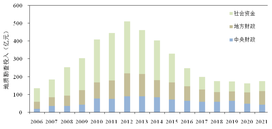 ▲2006—2021年全國地質(zhì)勘查投入對比圖