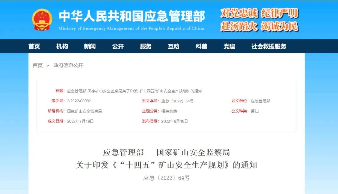 應急管理部|國家礦山安全監(jiān)察局關于印發(fā)《“十四五”礦山安全生產(chǎn)規(guī)劃》的通知