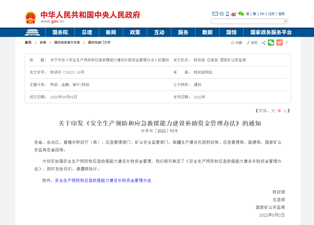 財政部、應(yīng)急部和國家礦山安監(jiān)局近日印發(fā)《安全生產(chǎn)預(yù)防和應(yīng)急救援能力建設(shè)補助資金管理辦法》(以下簡稱《辦法》),明確安全生產(chǎn)補助資金重點支持范圍、預(yù)算管理與監(jiān)督等內(nèi)容。
