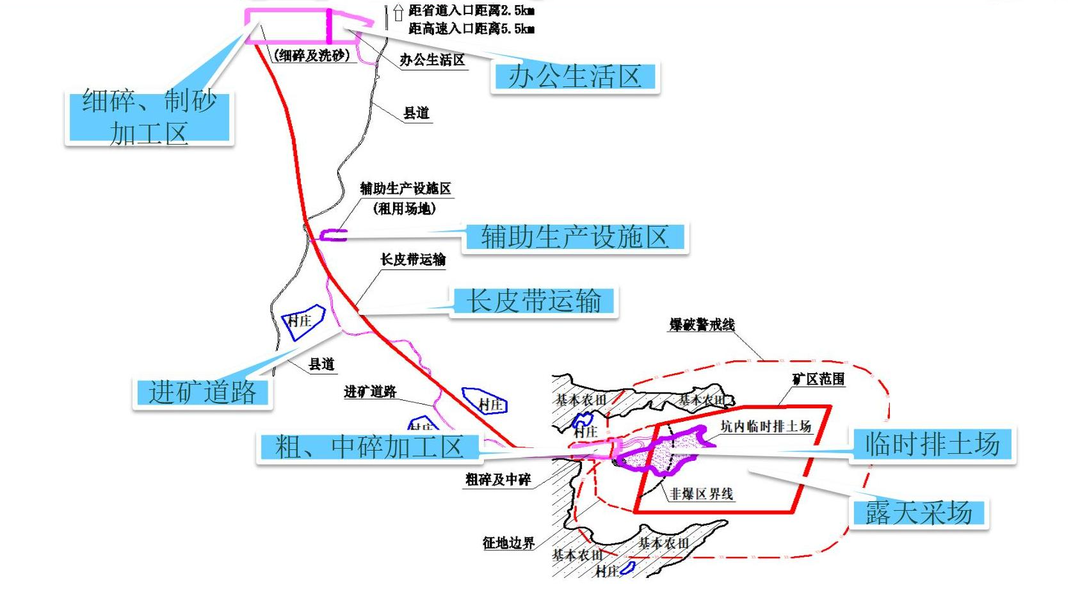 項(xiàng)目采用“露天開(kāi)采+汽車(chē)運(yùn)輸開(kāi)拓”方式,通過(guò)環(huán)保自卸車(chē)將礦石毛料轉(zhuǎn)運(yùn)至加工系統(tǒng)。