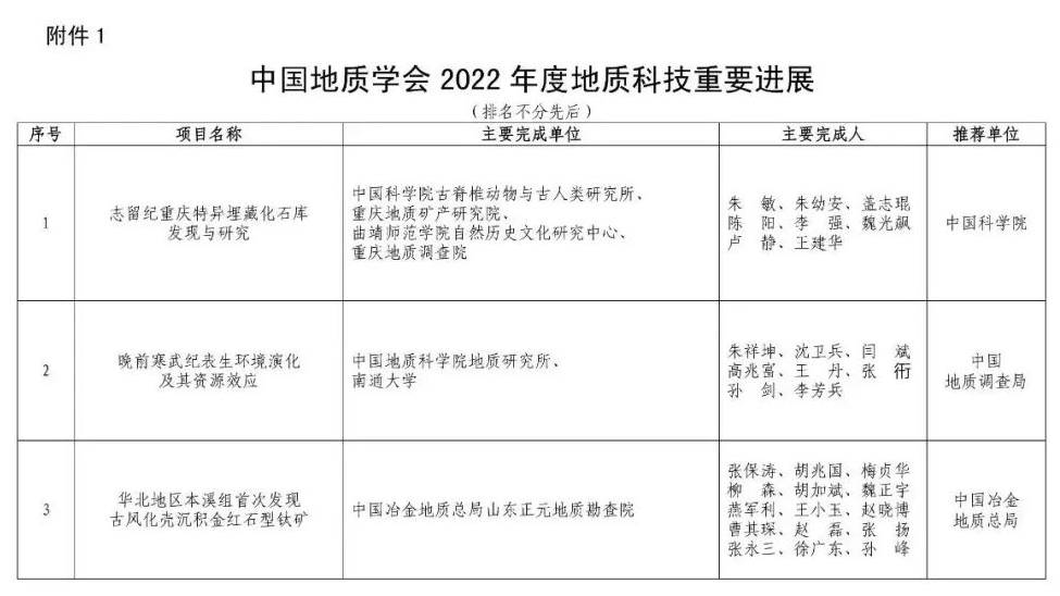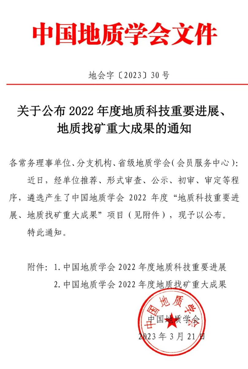 中國地質(zhì)學(xué)會2022年度地質(zhì)找礦重大成果
