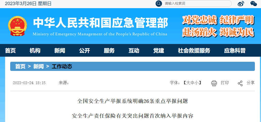 近期,應急管理部安全生產舉報系統(tǒng)和微信小程序首頁添加了“舉報重點行業(yè)領域生產經營單位重大隱患和違法違規(guī)等突出問題提示”,列舉了6大類、26條突出問題,作為社會公眾提交舉報前的必讀內容。