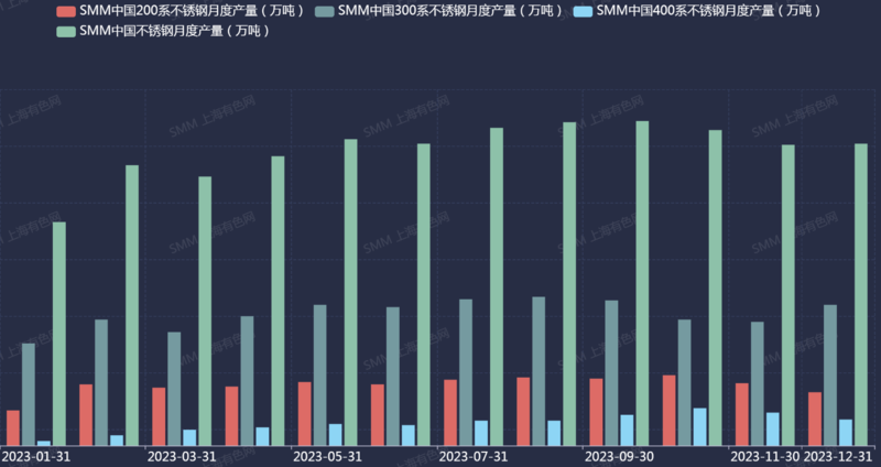 整體來看,2023年不銹鋼基本面供應(yīng)端各系不銹鋼總產(chǎn)量同比增加,下游整體需求較強。進入2024年,1月不銹鋼產(chǎn)量仍然維持較高水準(zhǔn),下游實際消費同比往年節(jié)前偏強,社庫環(huán)比僅增約1.97%,SMM預(yù)計短期內(nèi)不銹鋼期貨或橫盤寬幅震蕩,農(nóng)歷春節(jié)節(jié)后在不銹鋼產(chǎn)能過剩的情況下價格或弱勢運行。