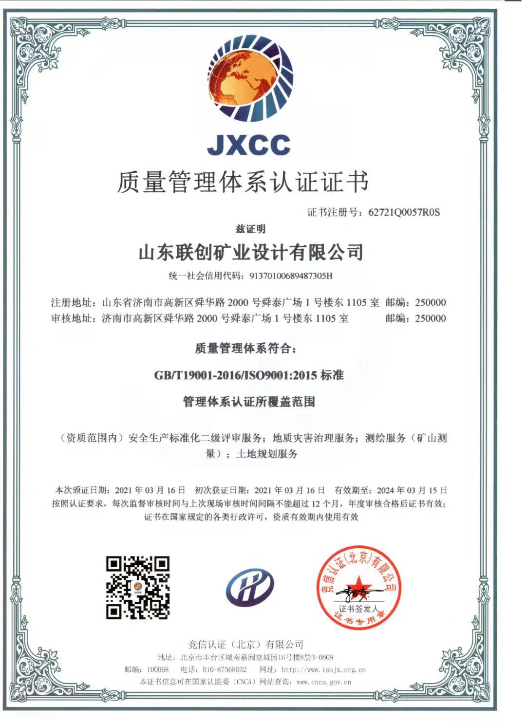 質(zhì)量管理體系認(rèn)證證書