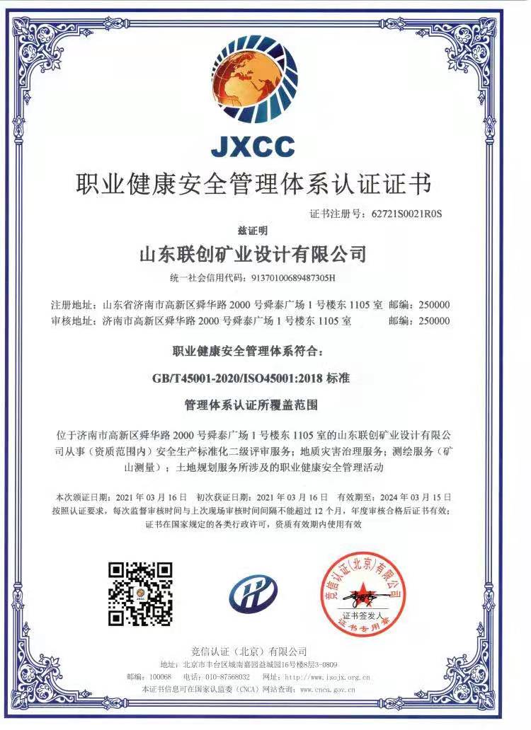 職業(yè)健康管理體系認(rèn)證證書